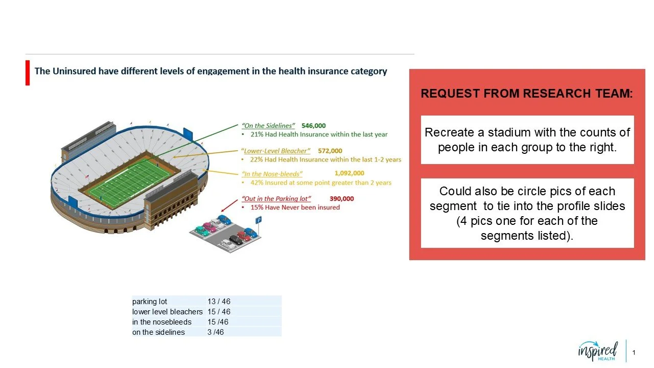 In order to showcase the process I utilize while designing I include below an example of one of the more complex slides that I produced. This process started with raw data and a few notes and ended with a polished layout that satisfied the clients needs while staying true to Inspired’s brand and style requirements.